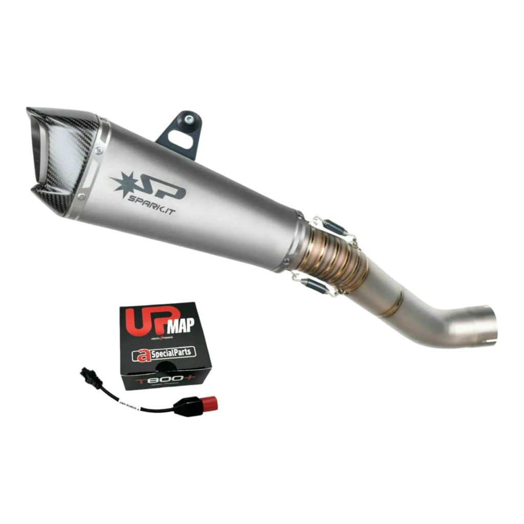 Bundle Spark Konix Evo slip-on GAP0402T + UpMap T800+ for Aprilia RS V4 2021 onwards (OBD cable included).